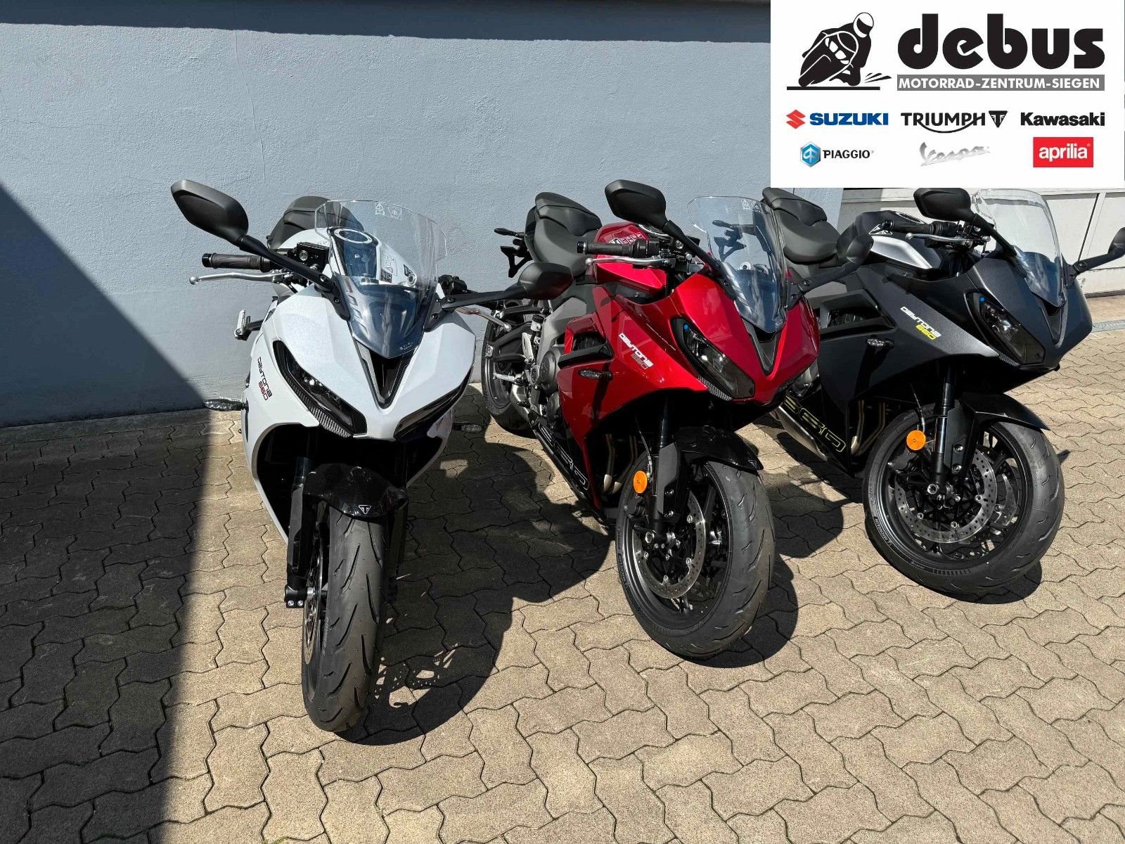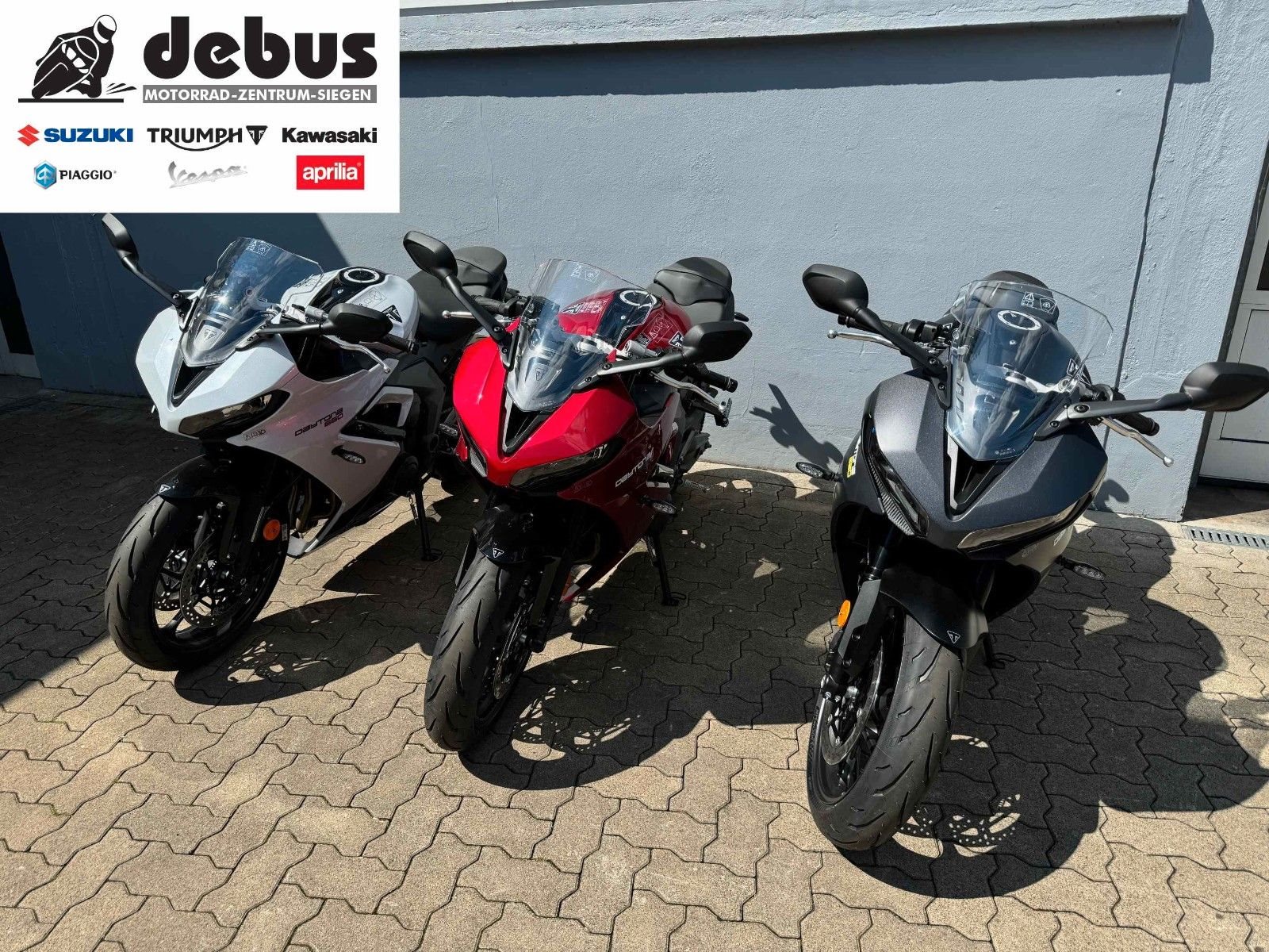 Stefan Debus GmbH, Vertragspartner für Suzuki, Triumph, Kawasaki und der Piaggio Gruppe (mit Vespa, Aprilia).